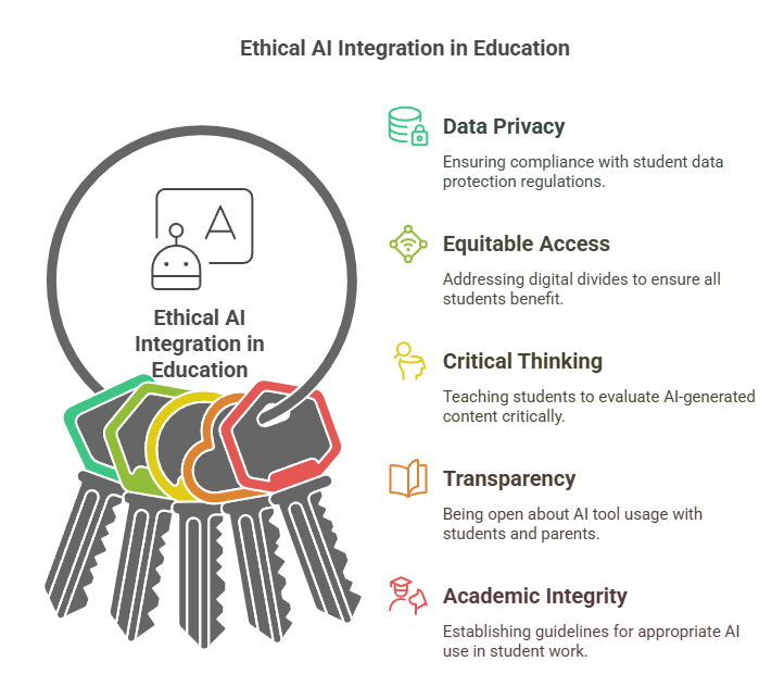 - Transparency: Be open with students and parents about how and why AI tools are being used.