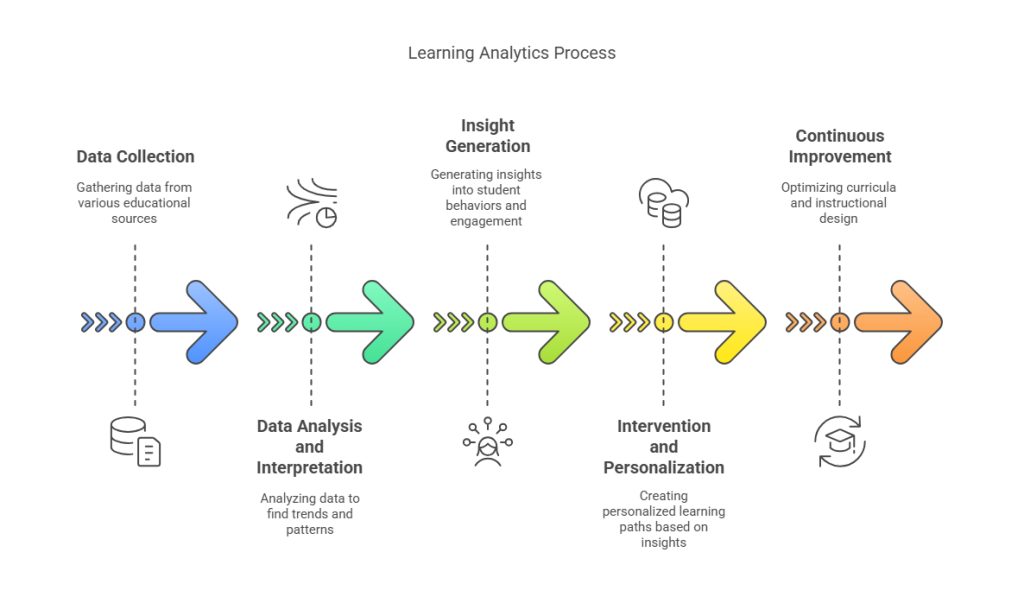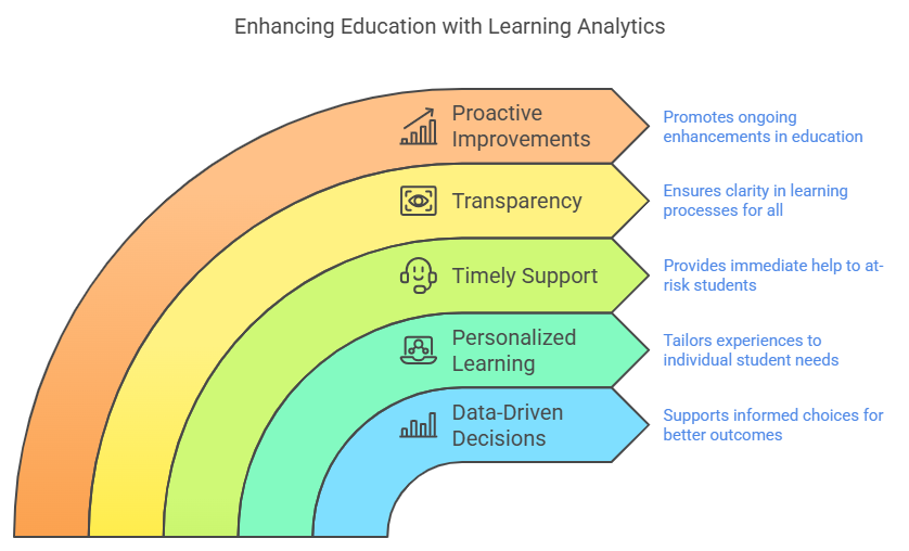 5. Continuous Improvement: Insights from Learning Analytics also help institutions optimize curricula, instructional design, and resource allocation, creating a cycle of continuous improvement.
