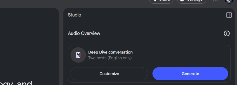 📌 Tip: This feature is useful for auditory learners, podcasters, or content creators who want summarized audio content.
