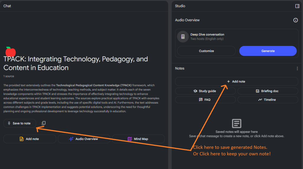 NotebookLM provides two ways to take notes: