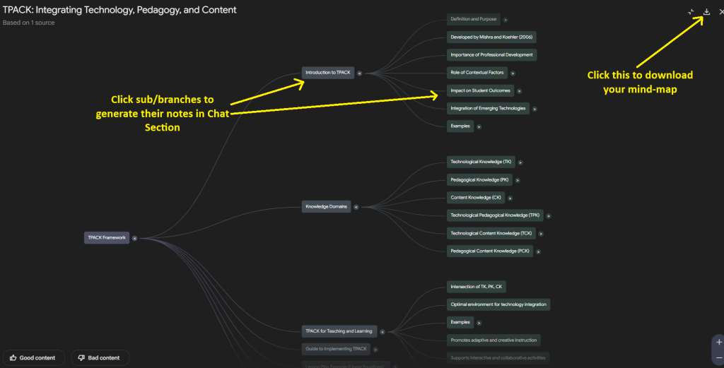 - Click the branches and sub-branches to generate notes and explore more in the Chat Section