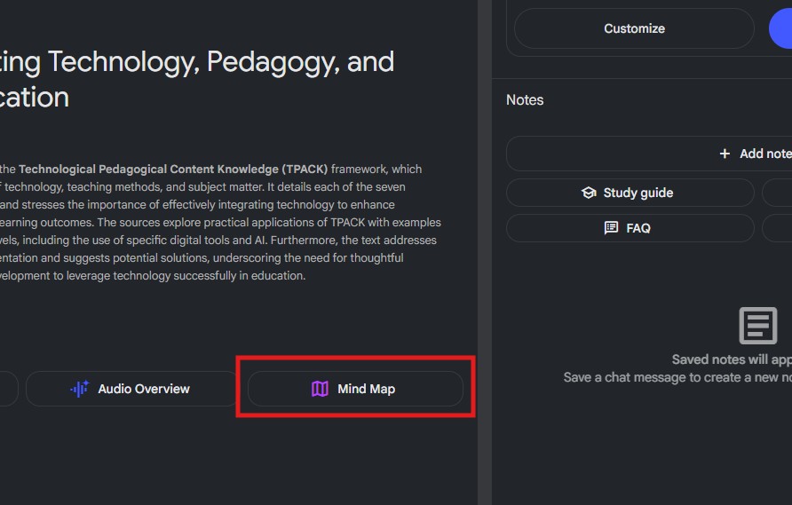- Click your Generated Mind Map from the Studio Section (Saved Notes) to explore